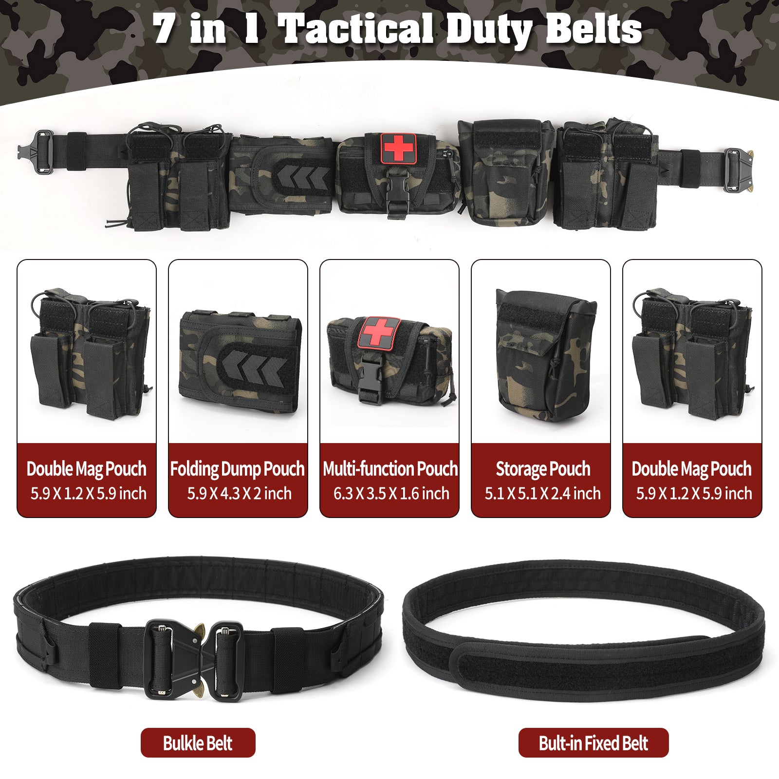 The Elite Survival TWS 5 in 1 Quick Release Tactical Duty Belt provides a strong, stable platform for your Multifunctional use. Modular versatile design for police, security officers, and law enforcement. This multifunctional belt can also be used as a practical belt, combat belt, battle belt, police weapon belt, and tactical equipment. Made from 1000D nylon, it has good tear resistance. Different and multifunctional pockets can be removed so you can choose what you need. It can also be used as a normal everyday belt (fitting on its pants) when you remove all of the bags.