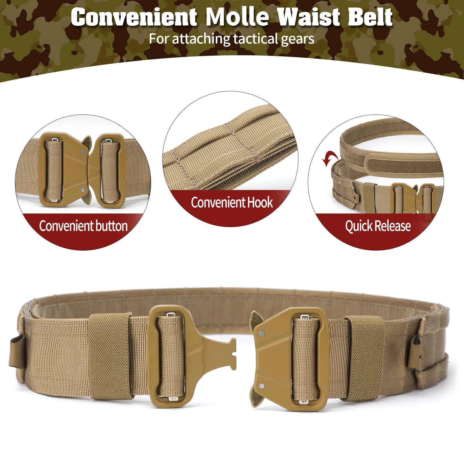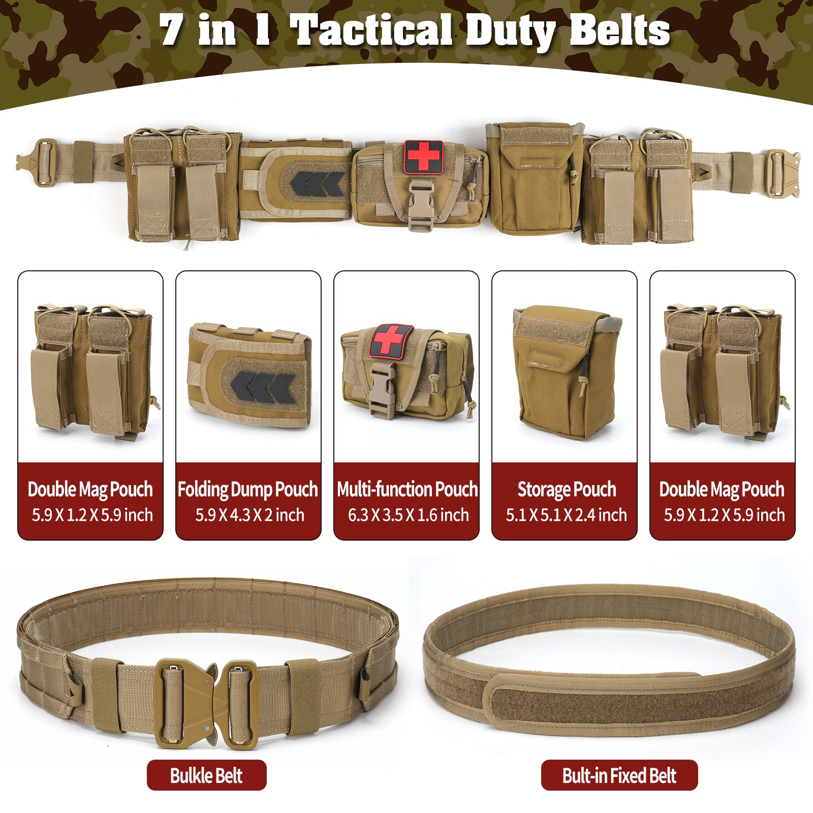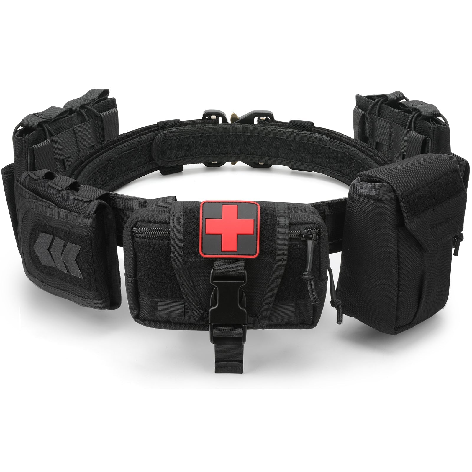 The Elite Survival TWS 5 in 1 Quick Release Tactical Duty Belt provides a strong, stable platform for your Multifunctional use. Modular versatile design for police, security officers, and law enforcement. This multifunctional belt can also be used as a practical belt, combat belt, battle belt, police weapon belt, and tactical equipment. Made from 1000D nylon, it has good tear resistance. Different and multifunctional pockets can be removed so you can choose what you need. It can also be used as a normal everyday belt (fitting on its pants) when you remove all of the bags.