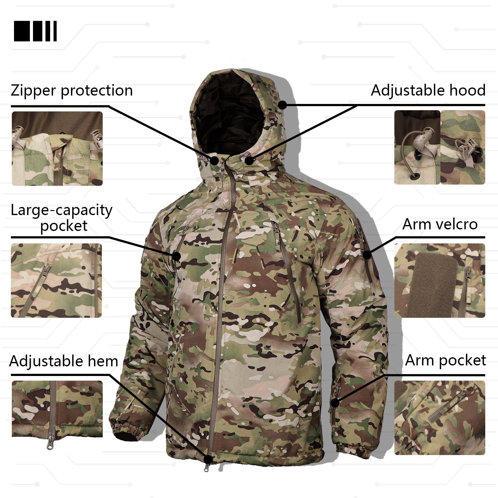 Archon 2.0 Tactical Jacket Waterproof Camouflage Coat For Winter is an excellent winter jacket that is suitable for wearing in winter keeps the body warm for a long time. There are multiple pockets and three-dimensional tailoring, which fully meets the basic outdoor needs.This Jacket offers waterproof and windproof protection, eliminating the need for additional gear like masks, hats, and scarves. Stay warm and dry in the harshest winter conditions with this versatile and functional coat.