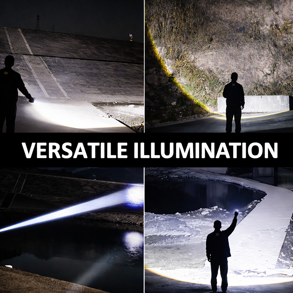 High Brightness Output, Long-Range Beam, Flood & Spotlight Modes, Adjustable Focus, Multiple Lighting Modes, USB-C Rechargeable, Durable Aluminum Housing